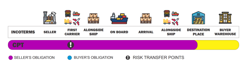 3.             CPT (Carriage Paid To): Transportation to the destination terminal